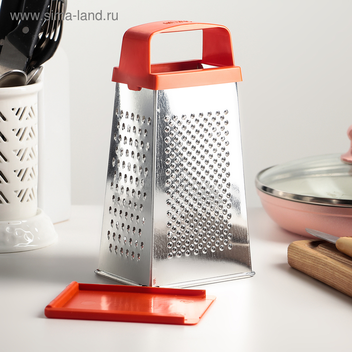 Терка 4 грани, с крышкой-дозатором и платиковой ручкой, 11х9х21см, цвет микс "Универсал"