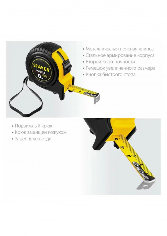 Рулетка в ударостойком обрезиненном корпусе 5м/19 STAYER MASTER