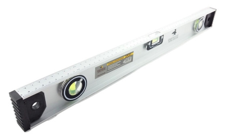 Уровень строительный, пузырьковый, тип "Рельс" предназначен для определения различных отклонений поверхностей по горизонтали, вертикали и любых других углов. Уровень оснащен тремя акриловыми глазками, два из них (вертикальный и горизонтальный) жестко зафиксированы, а третий, поворотный, позволяет измерять предварительно выставив на нем нужный угол. Присутствует возможность ручной калибровки уровня.