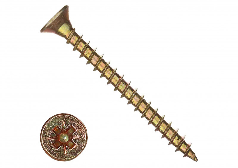 Саморез универсальный имеет потайную головку с крестообразным шлицем Pozidriv (Pozi, Pz), для стыковки с рабочим инструментом. Используется при соединении деревянных конструкций, крепления стальных пластин, уголков, кронштейнов, опор и прочих элементов к основаниям из древесины. Также может использоваться при сборочных работах в машиностроении, приборостроении и других отраслях промышленности, при монтаже в пластмассовые основания. Саморезы универсальные могут быть использованы совместно с дюбелями при монтаже в полнотелый кирпич, природный камень, бетон и ячеистый бетон.