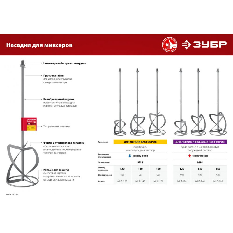 Для сохранения инструмента в рабочем состоянии, а так же предусмотренной гарантией завода изготовителя, наш интернет-магазин (zubr36.ru) рекомендует использовать ЗУБР М14, d160 мм, насадка-миксер для легких растворов "сверху-вниз" (МНЛ-160) строго по назначению.