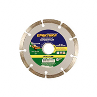 Недорогие алмазные диски для широкого спектра строительных материалов: кирпич, бетон, искусственный и натуральный камень. Высокая скорость резания. Хорошо подходит для выполнения непродолжительных бытовых работ. Для ручного электроинструмента. Не для абразивных материалов. Сухой рез. Охлаждение водой увеличивает ресурс диска.