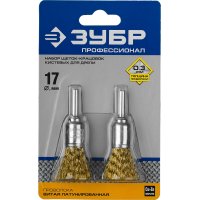 Набор щеток кистевых для дрели, витая стальная латунированная проволока 0,3мм, 17мм, 2шт Зубр