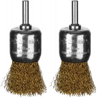 Набор щеток кистевых для дрели, витая стальная латунированная проволока 0,3мм, 30мм, 2шт Зубр