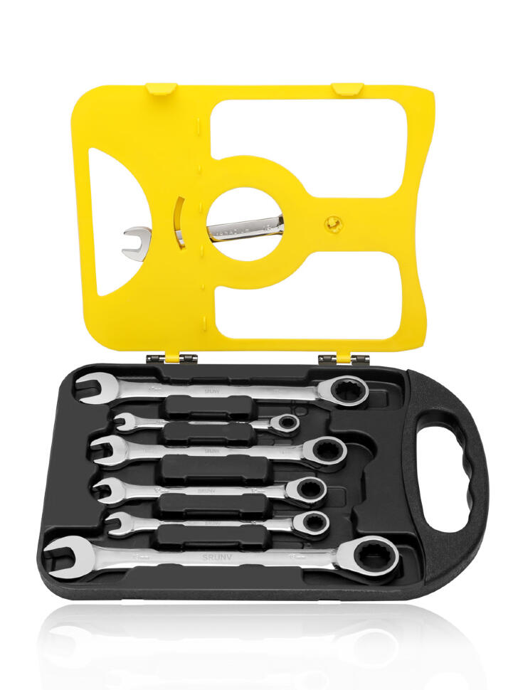 Набор гаечных ключей трещоточных 7 предметов GOODKING - это незаменимый помощник для любого мастера и домашнего умельца. Этот набор включает в себя все необходимые инструменты для выполнения широкого спектра задач по ремонту и сборке. В комплект входят трещоточные ключи различных размеров, которые обеспечивают быстрый и удобный затяг и ослабление гаек и болтов.