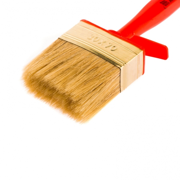 Кисть-ракля , 30 х 70 мм, с натуральной щетиной, пластмассовыми корпусом и ручкой, используется для малярных работ на участках большой площади, поэтому удобна для обработки стен, потолков и фасадов. Натуральная щетина устойчива к химическому воздействию, поэтому не деформируется и сохраняет упругость при работе с ЛКМ на водной основе, грунтовками, масляными красками и клеящими составами.ПреимуществаРасщепленная на концах щетина обладает повышенной способностью набирать, удерживать и распределять по поверхности лакокрасочные материалы.ЛКМ наносится ровно, так как кисть изготовлена с использованием натуральной щетины двойной выварки.Инструмент отвечает всем требованиям проведения малярных работ и прослужит долго — щетина устойчива к износу, а металлический бандаж имеет антикоррозийное покрытие и не ржавеет при контакте с ЛКМ и водой.Утолщенная рукоятка обеспечивает удобный захват и позволяет долго работать без усталости.Во время перерыва да кисть можно закрепить на краю емкости с краской при помощи при